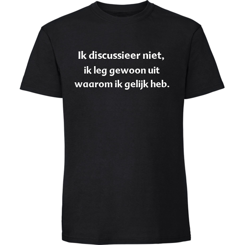 Dit 100% katoenen T-shirt is perfect voor diegenen die altijd een stap voor zijn in discussies. Met een grappige en eigenwijze boodschap, zal dit shirt gegarandeerd een glimlach op ieders gezicht toveren. Ideaal voor bijeenkomsten, casual dagen of als een humoristisch cadeau voor vrienden en familie.